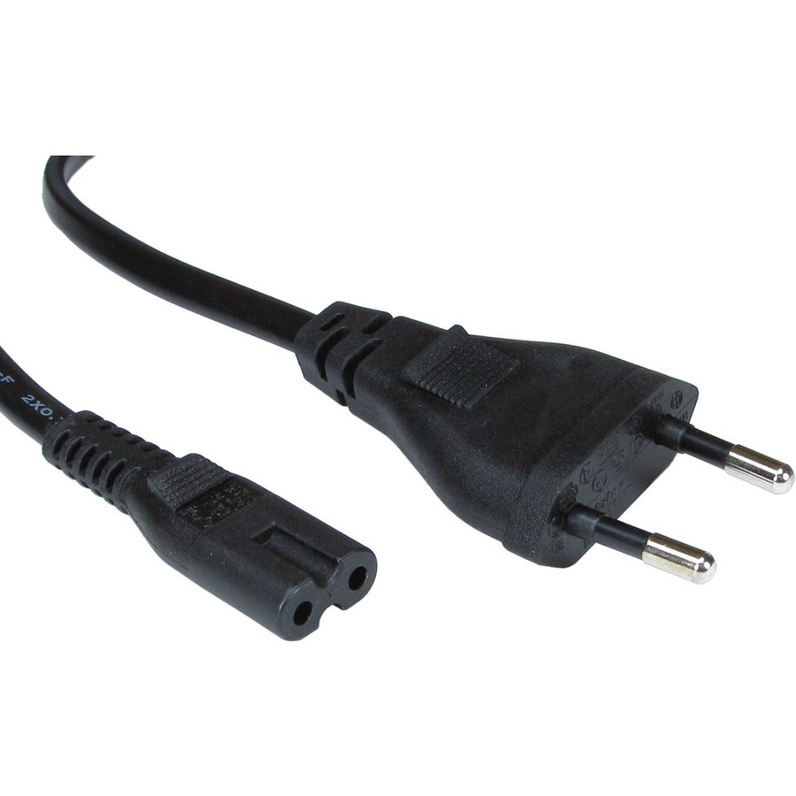 The C7 to European mains cable, more commonly know as a figure 8 lead is used for powering some low powered appliances such as portable CD players, audio/video equipment and some laptop power supplies.