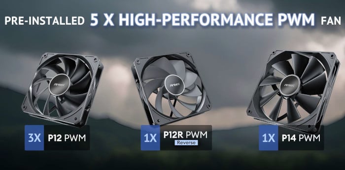 | Bottom Fan Support | 2 x 120mm or 2 x 140mm (120mm PWM Reverse fan on PSU shroud) |