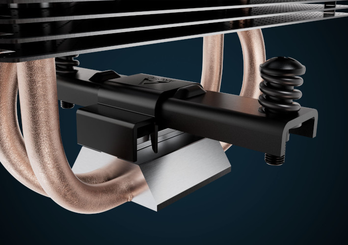 Allows offset mounting of the heatsink towards the CPU hotspot, optimizing alignment for asymmetric multi-die CPUs and ensuring more efficient heat transfer.