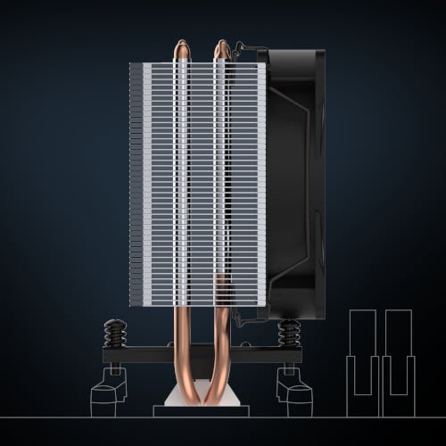 The offset arrangement ensures optimal heat transfer from the base to the fins – for even heat distribution and improved cooling performance.
