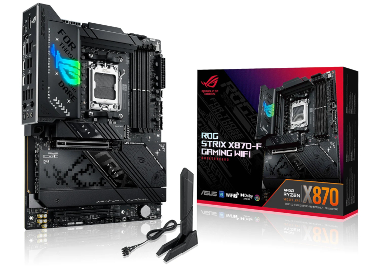 STRIX X870-F GAMING WIFI, ATX, AM5, DDR5, 1 x PCIe 5.0 x16, 1 x PCIe 4.0 x16, 4 x M.2, 2 x SATA, 1 x 2.5 Gb LAN, USB 4.0, WIFI 7, HDMI, DPort