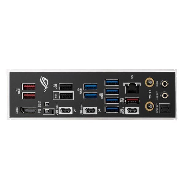 | Back Panel Connectors | 2 x USB4® (40Gbps) ports(2 x USB Type-C®) 4 x USB 10Gbps ports (3 x Type-A + 1 x USB Type-C® with up to 30W PD/PPS Fast-charge) 6 x USB 5Gbps ports (6 x Type-A) 2 x USB 2.0 ports (2 x Type-A) 1 x HDMI™ port 1 x Wi-Fi module 1 x Realtek 5Gb Ethernet 2 x Audio jacks 1 x Optical S/PDIF out port 1 x BIOS FlashBack™ button 1 x Clear CMOS button |
