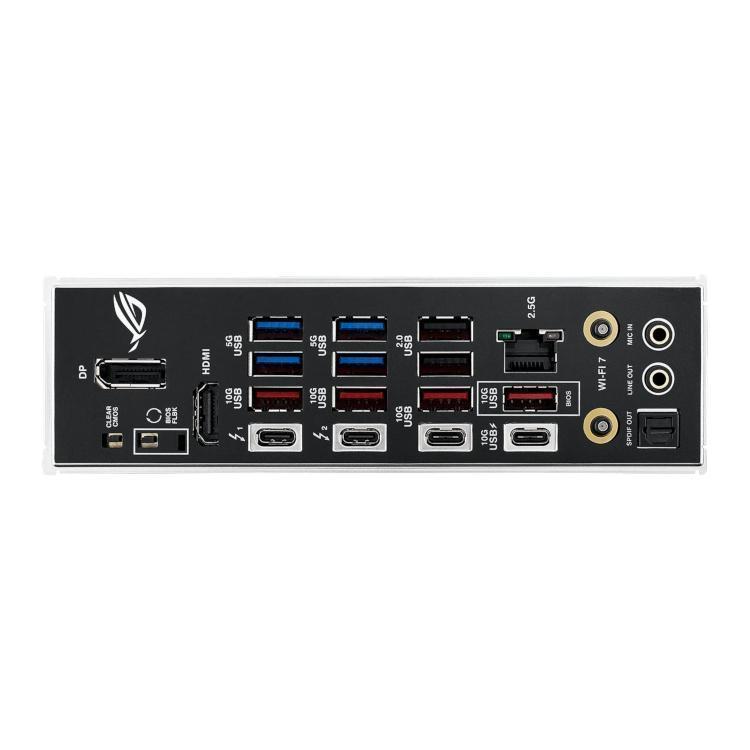 | Back Panel Connectors | 2 x Thunderbolt™ 4 (2 x USB Type-C®) 6 x USB 10Gbps ports (4 x Type-A + 1 x USB Type-C® + 1 x USB Type-C® with up to 30W PD Fast-charge) 4 x USB 5Gbps ports (4 x Type-A) 2 x USB 2.0 ports (2 x Type-A) 1 x DisplayPort 1 x HDMI™ port 1 x Wi-Fi module 1 x Intel® 2.5Gb Ethernet port 2 x Gold-plated audio jacks 1 x Optical S/PDIF out port 1 x BIOS FlashBack™ button 1 x Clear CMOS button |