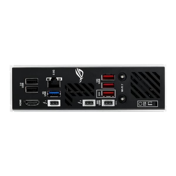 | Back Panel Connectors | 2 x Thunderbolt™ 4 (2 x USB Type-C®) 1 x USB 20Gbps port (1 x USB Type-C®) 3 x USB 10Gbps ports (3 x Type-A) 1 x USB 5Gbps port (1 x Type-A) 2 x USB 2.0 ports (2 x Type-A) 1 x HDMI™ port 1 x Wi-Fi module 1 x Intel® 2.5Gb Ethernet port 1 x BIOS FlashBack™ button |