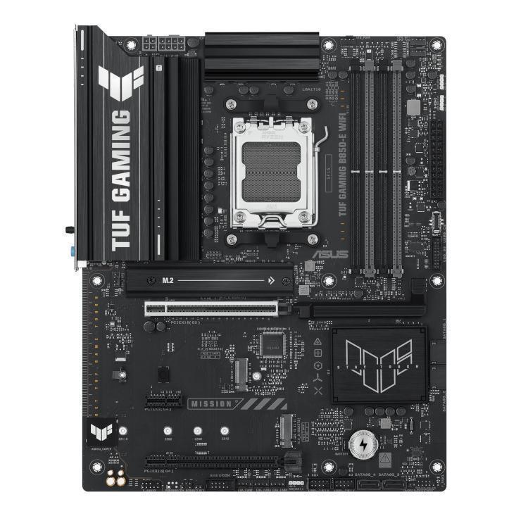 ASUS TUF GAMING B850-E WIFI takes all the essential elements of the latest AMD Ryzen™ processors and combines them with game-ready features and proven durability. Engineered with military-grade components, an upgraded power solution and a comprehensive cooling system, this motherboard goes beyond expectations with rock-solid and stable performance for marathon gaming. TUF GAMING motherboards also undergo rigorous endurance testing to ensure that they can handle conditions where others may fail. This platform delivers the power and connectivity that advanced AI PC applications demand.