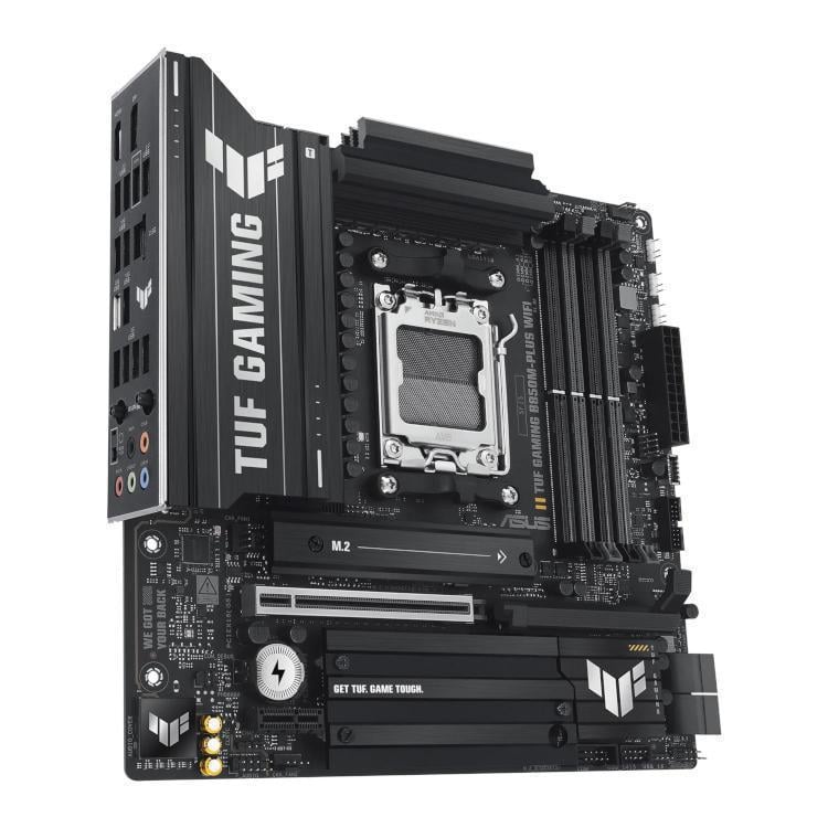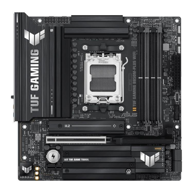 ASUS TUF GAMING B850M-PLUS WIFI takes all the essential elements of the latest AMD Ryzen processors and combines them with game-ready features and proven durability. Engineered with military-grade components, an upgraded power solution and a comprehensive cooling system, this motherboard goes beyond expectations with rock-solid and stable performance for marathon gaming. TUF GAMING motherboards also undergo rigorous endurance testing to ensure that they can handle conditions where others may fail. This platform delivers the power and connectivity that advanced AI PC applications demand.