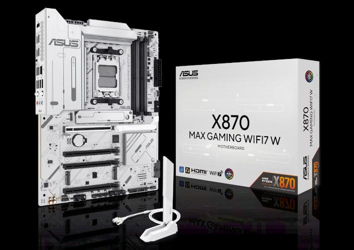 ASUS X870 series motherboards are expertly engineered to unleash the full potential of AMD Ryzen™ 9000 series processors. Boasting a robust power design, comprehensive cooling solutions and intelligent tuning options, the X870 MAX GAMING WIFI7 W motherboard provides users and PC DIY builders with a range of performance optimizations via intuitive software and firmware features. It’s designed to be Advanced AI PC-ready, offering the power and connectivity needed for demanding AI applications.