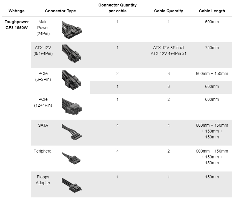 Toughpower GF3 1650W comes with two 16pin connectors to offer powerful and stable performance allowing the PSU to natively run next-generation GPUs.