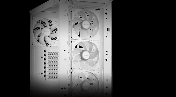 With optimization for maximum airflow, Light Wings LX 120mm PWM is the right choice for any case configuration that demands high cooling performance. Its 7 airflow-optimized fan blades not only reduce noise-generating turbulences but also ensure Light Wings LX PWM provides the performance that is needed, even in demanding configurations. 3 Light Wings LX 120mm PWM pull cool air from the front, while a large 140mm fan exhausts the warm air through the rear.