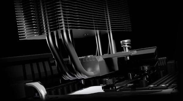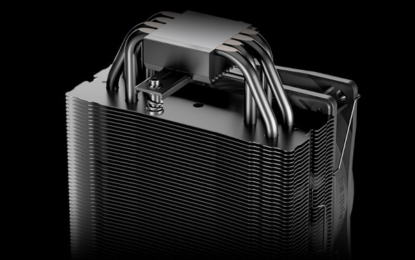 Pure Rock 3 Black is equipped with 4 black 6mm heat pipes, matching the color of the heat sink. The heat pipes are key to the cooler’s great cooling performance, because they transport the heat to optimum locations on the cooling fins. They do so with minimal bends and high bending radius, to maintain the performance of each heat pipe as good as possible.