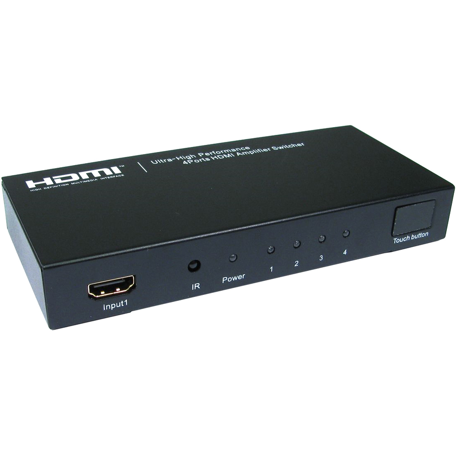 The HD-SW104 is an intelligent HDMI amplified 4 port switch. It allows four HDMI devices to be switched to one HD Monitor, Projector or HD TV. With a touch button design switching is easier and convenient.
