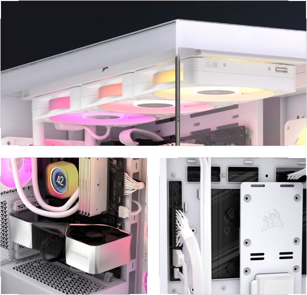 You don’t need a large footprint to build a decked-out PC. The 3500X accommodates most large graphics cards and CPU coolers, 360mm radiators, and even EATX motherboards – without taking up your entire desk.