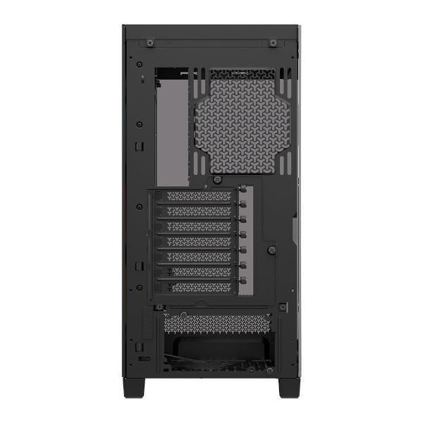 Reverse-rotor ARGB PWM RS-R intake fans are included for unobstructed RGB lighting and low-noise cooling. Fresh air is pulled through the ventilated side and into the spacious mid-tower chassis for effective cooling and plenty of airflow to ensure maximum performance.