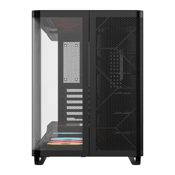 A unique triple-chamber design was created to isolate hot components for effective cooling and maximum performance at all times. Separate chambers for the CPU, GPU/motherboard, and PSU, cables, and storage allow for exceptional thermals and an easy PC building process.
