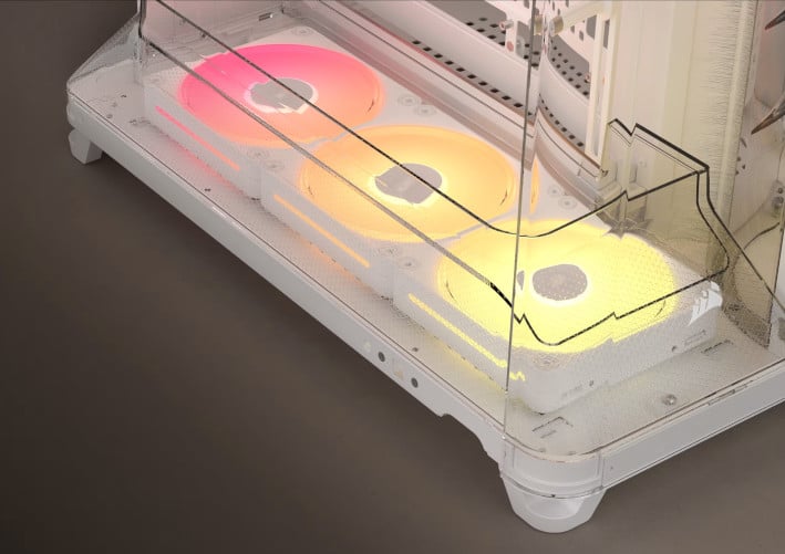 Preinstalled reverse-rotor RS-R ARGB 120mm fans in the bottom of the chassis allow for powerful, low-noise cooling with glorious, unobstructed RGB lighting.