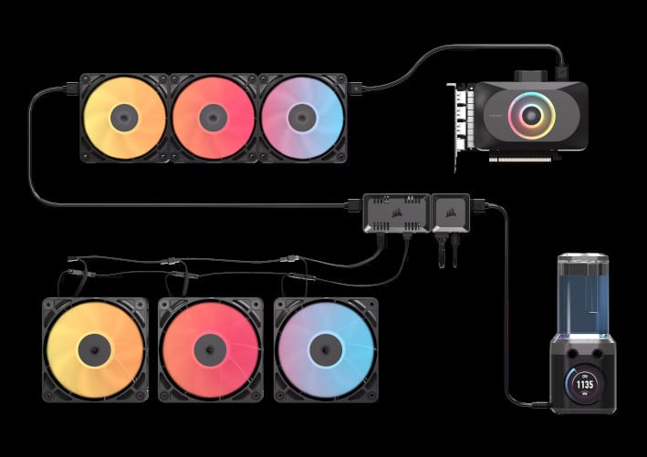 The CORSAIR COMMANDER DUO Lighting and Fan Controller unites PWM and iCUE LINK ecosystems with support for up to 12 daisy-chained PMW ARGB fans and iCUE LINK devices when a System Hub is attached, all through CORSAIR’s powerful iCUE software.