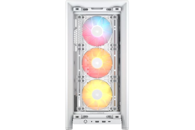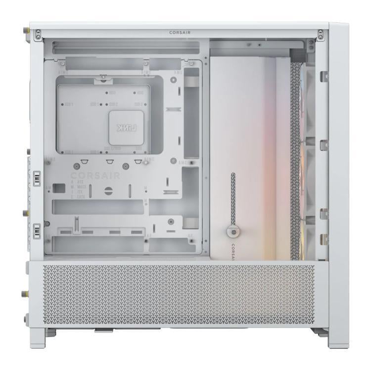 The CORSAIR FRAME 4000D RS ARGB is a fully-modular and spacious mid-tower PC case featuring InfiniRail™ Fan Mounting System and compatible with reverse connector motherboards.