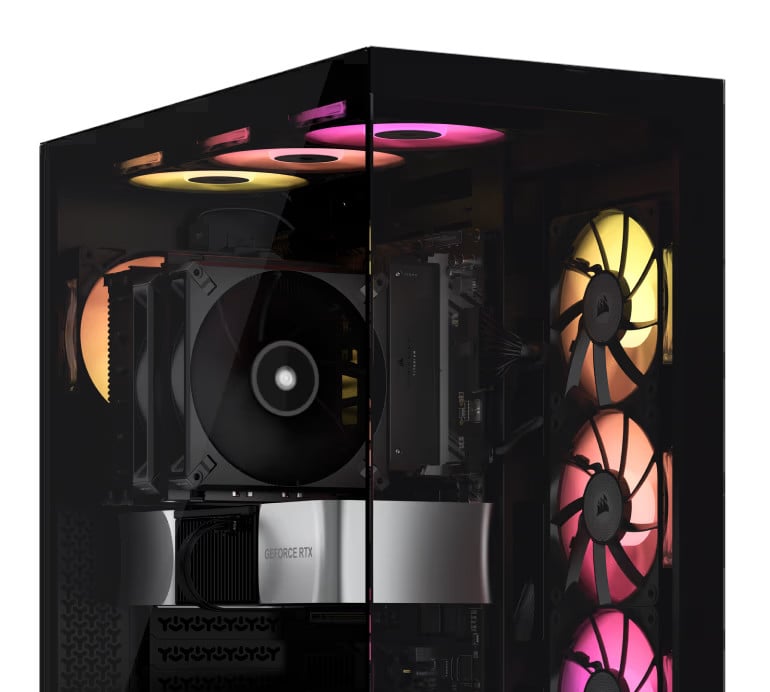 You don’t need a large footprint to build a decked-out PC. The 3500X accommodates most large graphics cards and CPU coolers, 360mm radiators, and even EATX motherboards – without taking up your entire desk.