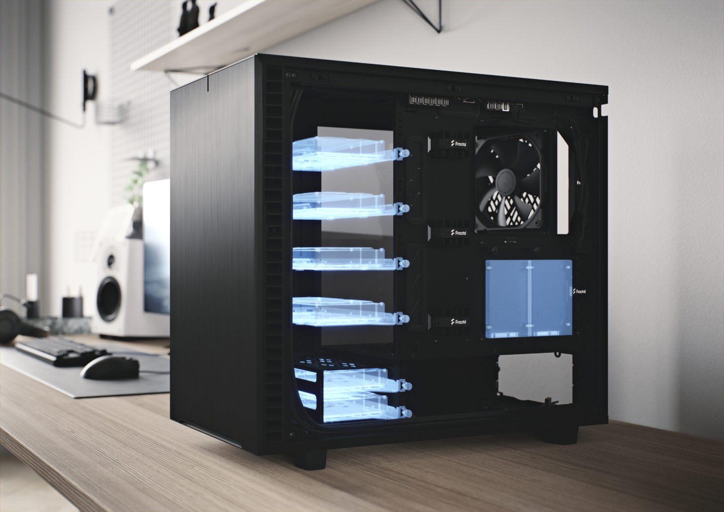 The Define 7 is the latest pinnacle of the renowned Define series, setting a new standard for what you should expect from a mid-tower case when it comes to modularity, flexibility and ease of use. New chassis design opens up to fully expose the case interior. Anodized aluminum front panel with reversible dual-handed hinges. Multibracket converts unused fan positions to HDD, SSD or pump mounts.