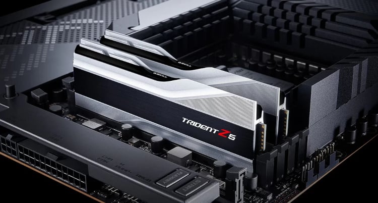 Trident Z5 series DDR5 memory is designed for ultra-high performance on DDR5 platforms. Featuring a sleek and streamlined aluminum heatspreader design, available in metallic silver or matte black, the Trident Z5 series DDR5 DRAM memory is the ideal choice to build a high-performance system.