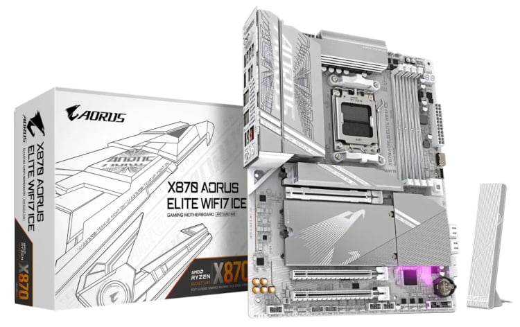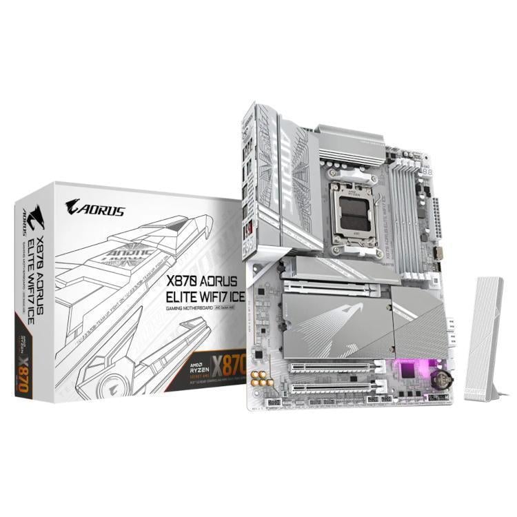 X870 AORUS ELITE WIFI7 ICE, ATX, AM5, DDR5, 1 x PCIe 5.0 x16, 1 x PCIe 4.0 x16, 1 x PCIe 3.0 x16, 4 x M.2, 1 x 2.5 Gb LAN, Wi-Fi 7, USB 4.0, HDMI