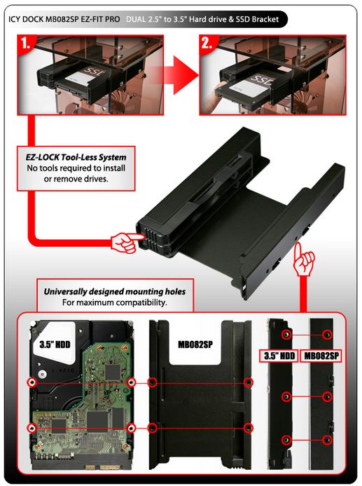 Dual 2.5" HDD & SSD Full Metal Mounting Bracket for Internal 3.5" Drive Bay