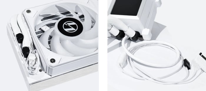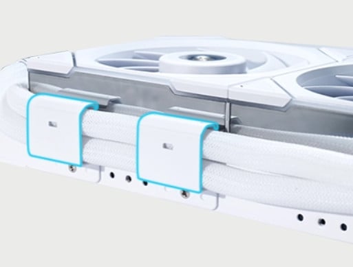The fan cables are integrated into the cooling tubes, simplifying the connection process.