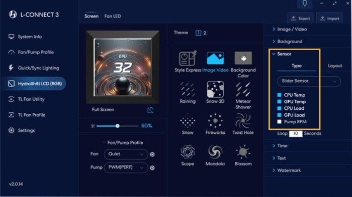 The HydroShift AIO release brings L-Connect 3 updates with multiple themes like Atmosphere, Planet City, and Steampunk, also compatible with the GA II LCD series. These themes offer unique visuals and preset layouts for hardware monitoring.
