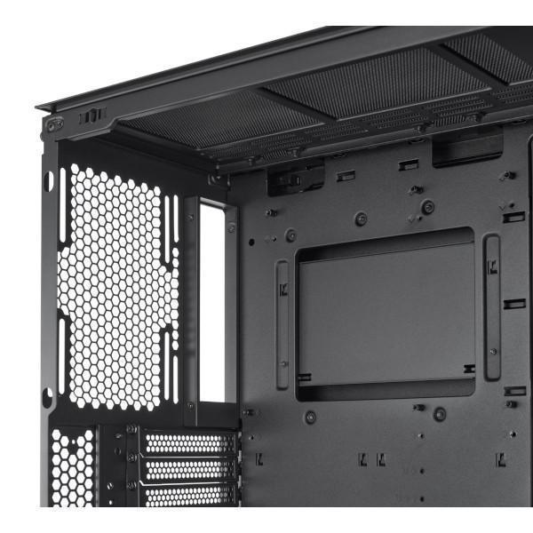 the front, top, and on the PSU shroud’s side*. The front mesh extends to the top for a continuous mesh