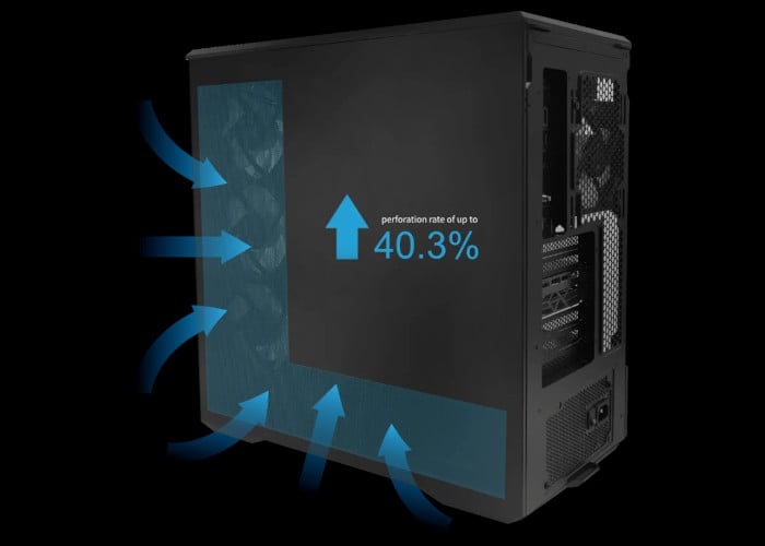 In addition to accommodating large water cooling and air cooling setups, the Vector V100 features an optimized mesh panel on the side, with a perforation rate of up to 40.3%, greatly enhancing cooling efficiency.