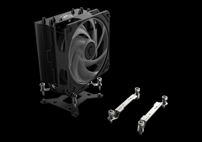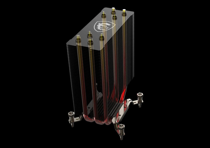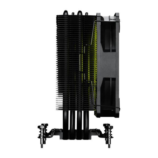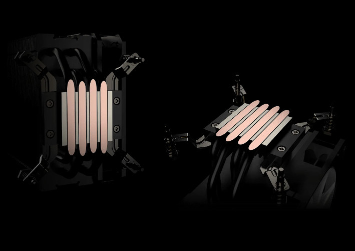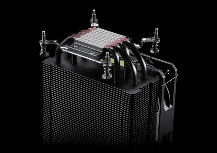 Four 6mm copper heat pipes rapidly channel heat away from the CPU, enhancing thermal dissipation across the fin array.