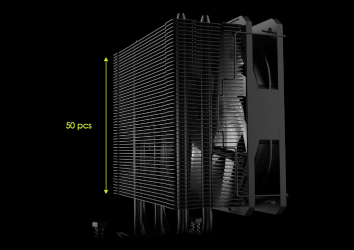 Features 50 tightly packed cooling fins with a low-resistance airflow design. This combination ensures focused air pressure, enhanced cooling efficiency, and quieter operation.