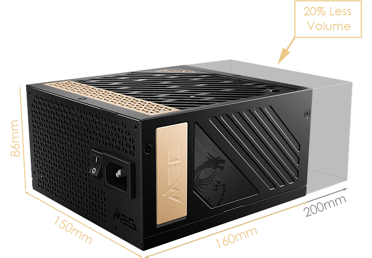 Compared with the other platinum power supplies on the market. The MEG power supply’s 160mm-long and 150mm-wide dimensions ensure a comfortable and easy fit in most PC cases, effectively providing more space for cable management and airflow to the rest of the system.