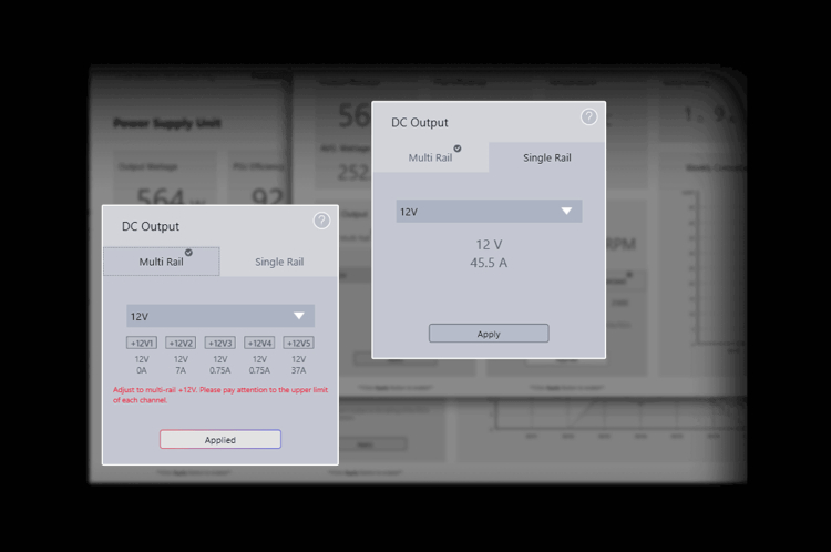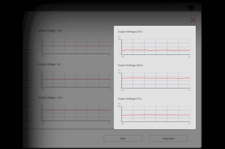 Through the MSI Center, this power supply monitors the real-time status of the percentage of power supply to GPU and CPU and the total system wattage used.