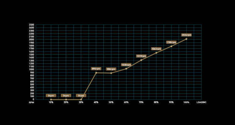 Automatically detect the power loading and internal temperature to adjust the fan speed. When the loading is below 55% or the temperature is below 70 degrees, the fan will automatically stop to reduce noise.