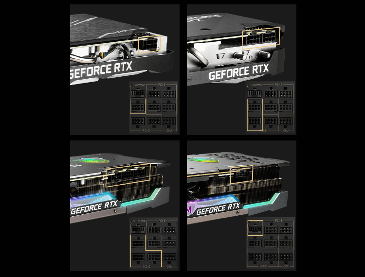 The power supply can support NVIDIA and AMD graphics cards. Prepared for the highest of requirements, MEG power supply’s IO can support different and versatile ways of connection according to the power connector design of the graphics cards.