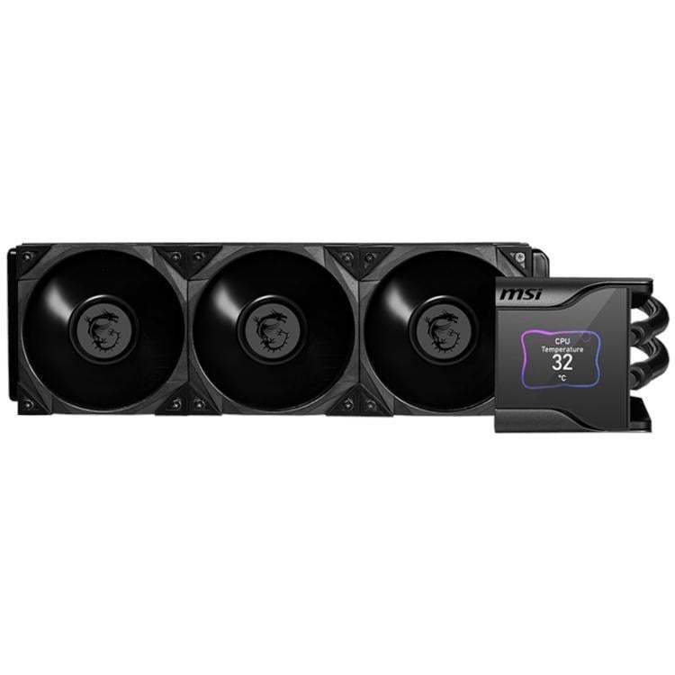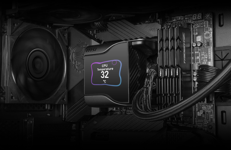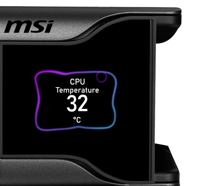 The MEG CORELIQUID S Series is here to provide the ultimate silence cooling. It is equipped with MSI's innovative MEG SILENT GALE P12 silent gaming fan and supports 0 rpm fan mode. The 2.4” IPS display can also help you see a conglomerate of hardware information or customizable graphics and videos. The MEG CORELIQUID S Series descends from the top, and you just can’t hear it coming.