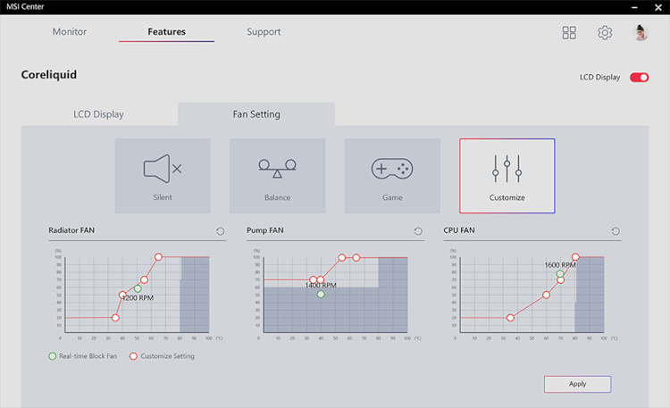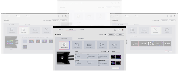 Everything ranging from MEG CORELIQUID S Series' fan speed to the IPS display can be adjusted through the MSI Center.
