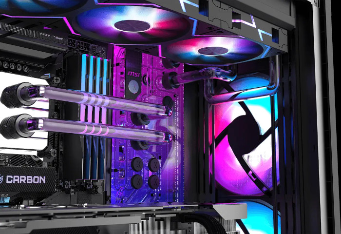 Users can customize their setup by choosing one pump reservoir, one water-cooling distro plate, up to 3 radiators, or up to 13 fans, depending on their preferred setup.