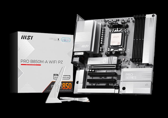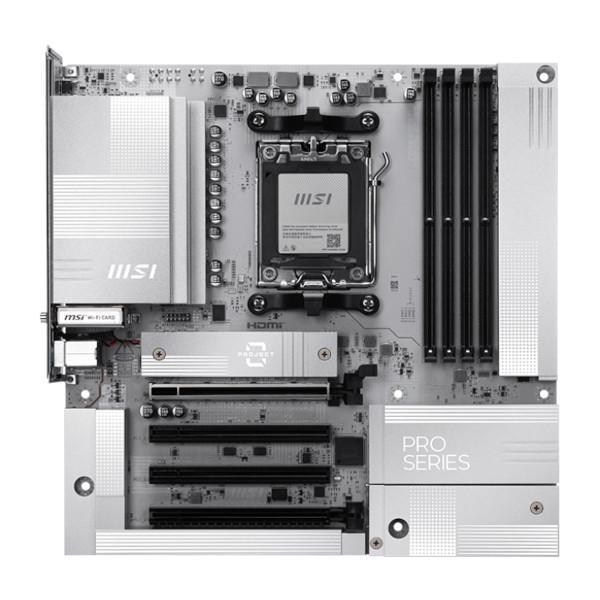 PRO B850M-A WIFI PZ offers a sleek design with a harmonious silver-white color scheme that perfectly matches white PC builds. Its innovative back-connect design reduces the complexity of cable management, resulting in an aesthetically pleasing appearance for the system. It is engineered with many exclusive features of MSI, Wi-Fi 7 with EZ Antenna, 5G LAN, PCIe 5.0 M.2, and Supplemental PCIe Power, ready for the AMD Ryzen™ 9000 series processors.