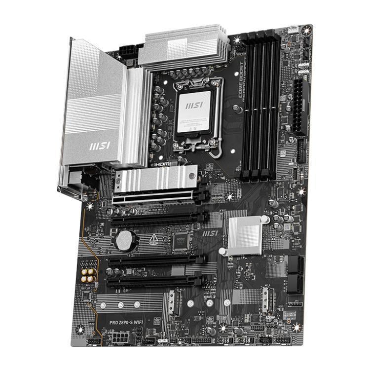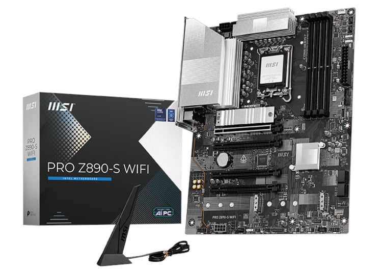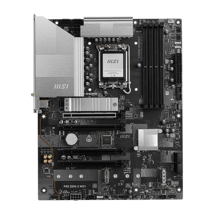 PRO Z890-S WIFI offers a simple design with a harmonious silver color scheme that perfectly matches both white and black PC builds. It is engineered with many exclusive features of MSI, a true Wi-Fi 7 with EZ Antenna, 5G LAN, Thunderbolt 4, PCIe 5.0 M.2 with EZ M.2 Shield Frozr, and Supplemental PCIe Power, ready for the Intel® Core™ Ultra processors.