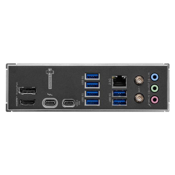 | Back Panel Connectors | 1 x DisplayPort 6 x USB 5Gbps Type-A ports 1 x 2.5G LAN 1 x Wi-Fi / Bluetooth 1 x Audio Connectors 1 x HDMI™ 1 x Thunderbolt™ 4 40Gbps (Type-C) 1 x USB 20Gbps Type-C port |