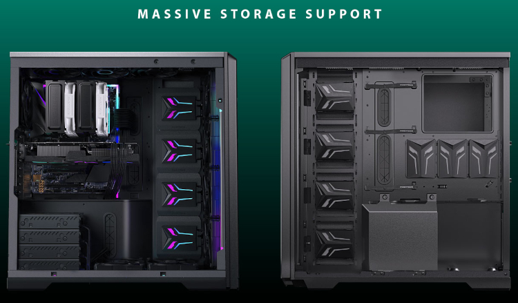 4 x 3.5" HDD storage locations plus additional 8 with optional Phanteks mounting brackets