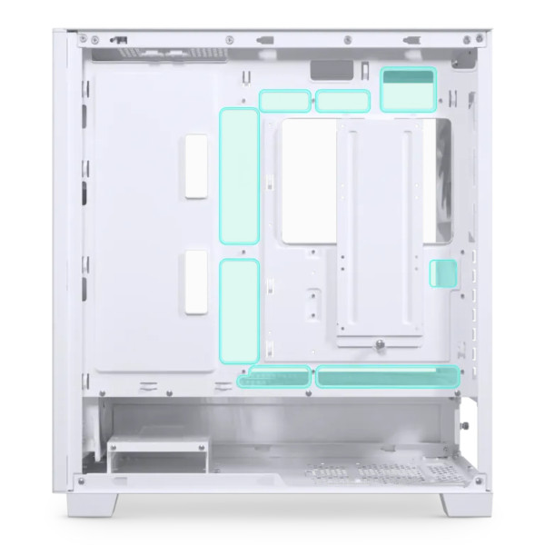 Triple 120mm positions on the midplate for direct GPU cooling.