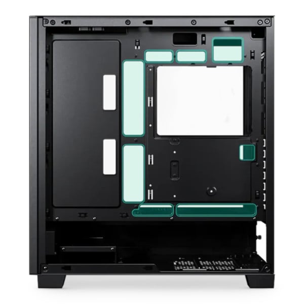 Triple 120mm positions on the midplate for direct GPU cooling.