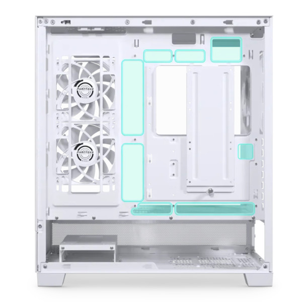 Triple 120mm positions on the midplate for direct GPU cooling.