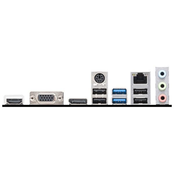 | Back Panel Connectors | 1 x HDMI 1 x VGA 1 x DisplayPort 1 x Keyboard / Mouse 2 x USB 3.2 Gen 1 5Gbps Type-A 1 x LAN port 3 x Audio connector 4 x USB 2.0 |