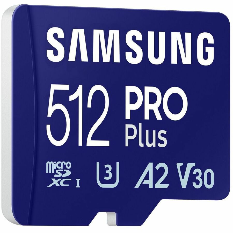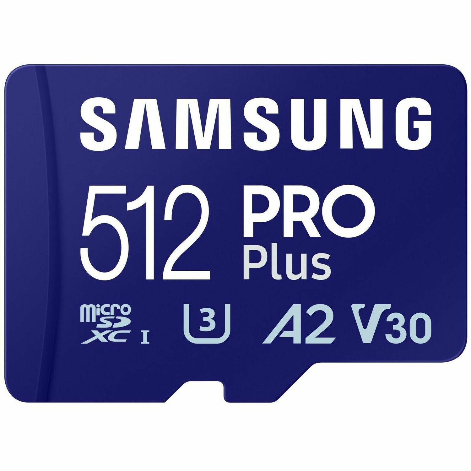 Samsung PRO Plus MB-MD512S 512 GB Class 10/UHS-I U3 V30 microSDXC - 180 MB/s Read - 130 MB/s Write - 10 Year Warranty
