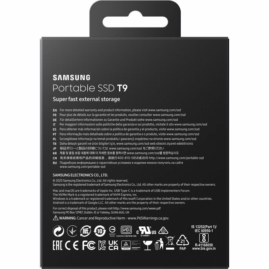 Reviews of the Samsung T9 4 TB Portable Solid State Drive - External - Black - Desktop PC, Notebook, Tablet, Gaming Console, Smart TV, Camera Device Supported - USB 3.2 (Gen 2) Typ