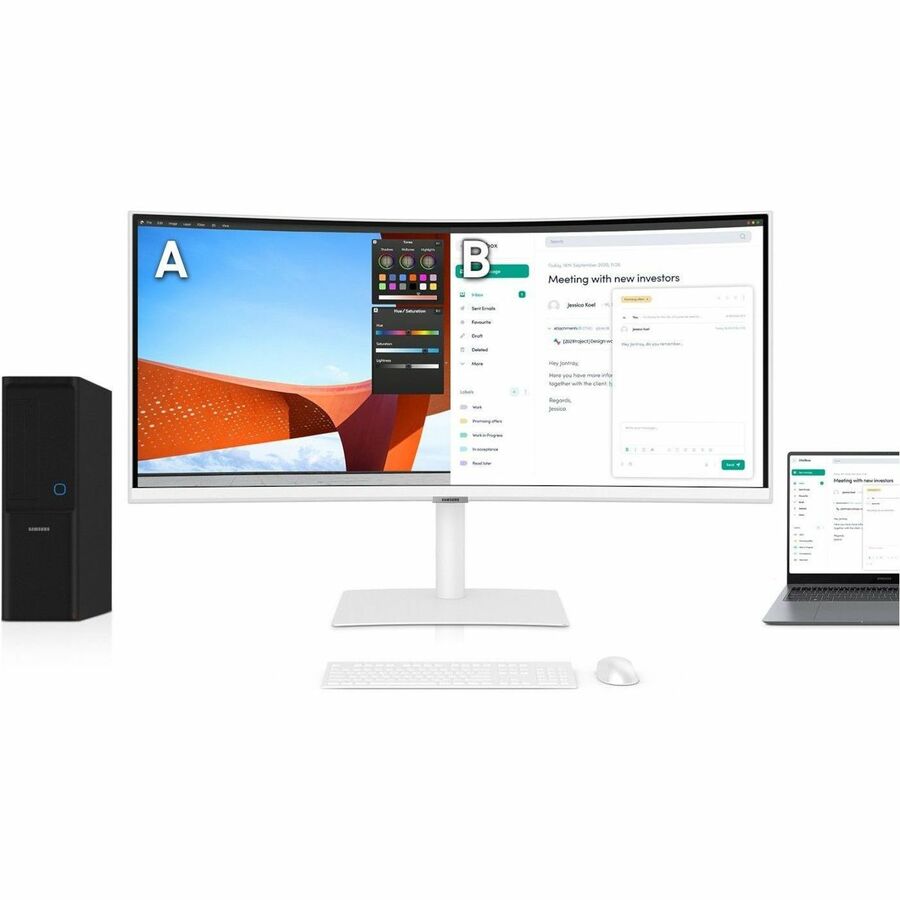Ditch the clutter with multiple ports. Power devices with 90W charging and transmit data at the same time with Thunderbolt™ 4 connectivity. The HDMI, DisplayPort and USB3 Hub keep you connected to your devices, while a LAN port lets laptops without a port to connect to the monitor for Ethernet use.